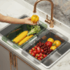 The basket is designed with multiple drainage holes to effectively drain excess water from washed vegetables and fruits. This feature helps to keep produce fresh and prevents waterlogging.
